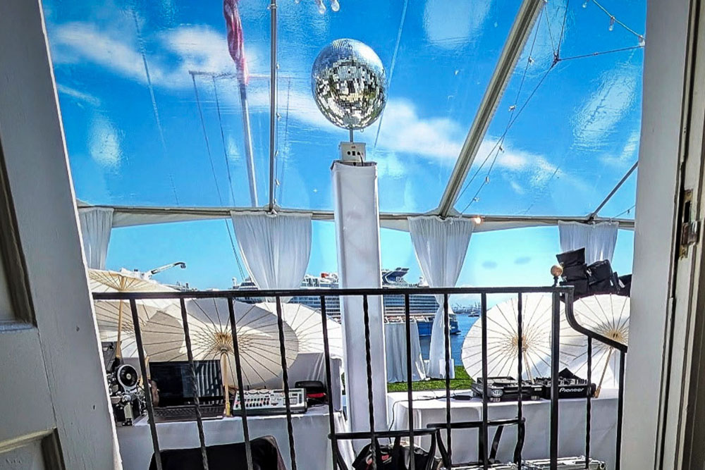 Mirror balls pair beautifully with our dance party lighting, haze, and especially with dynamic lighting.